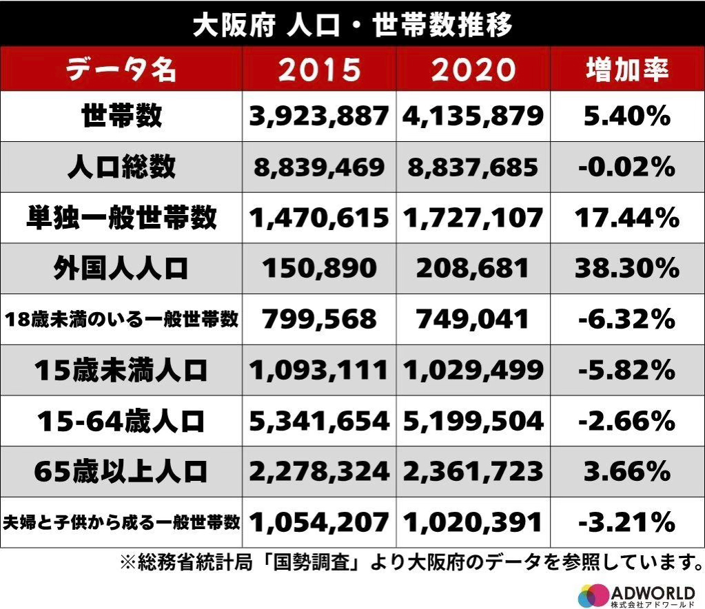 大阪府の人口・世帯構造の変化は、ポスティングが「再評価」される明確な理由