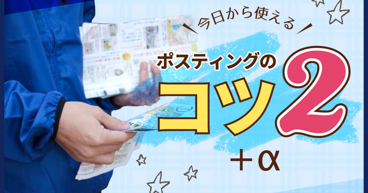 大切なのは「限られた時間内で効率よく配布する」こと みなさま、ポスティングライフを楽しんでいますか? 最近は、急に暖かくなり配布中はむしろ暑いくらいですね。 さて今回のブログでは、ポスティングを始めたてに陥りやすいポイン … 続きを読む 【今日から使える】ポスティングのコツ2 +α